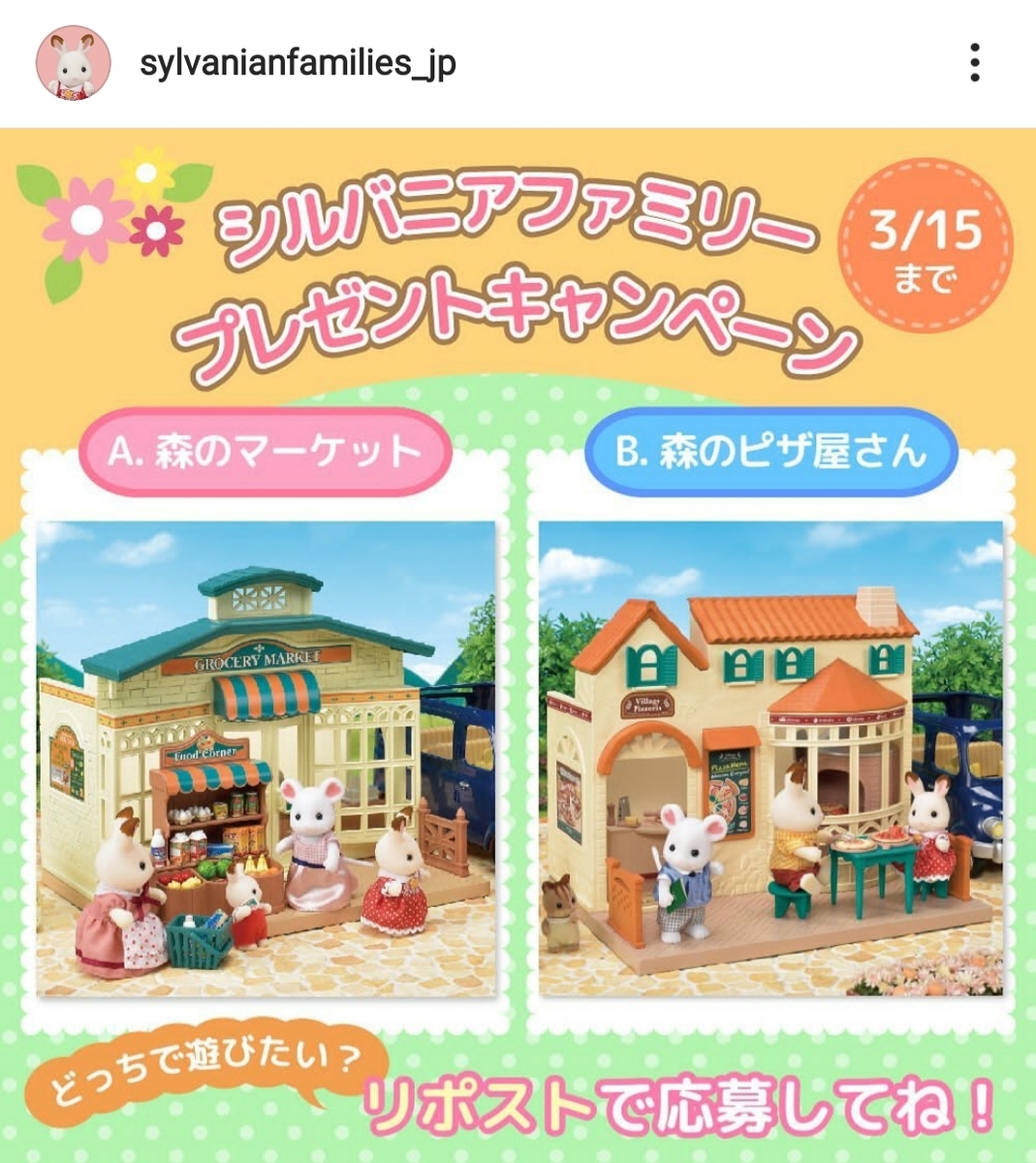 シルバニアファミリー公式インスタグラムで3月15日まで行われていたキャンペーン